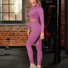 Legginsy bezszwowe do fitnessu zaprojektowane by podkreślać kobiecy charakter sportowej sylwetki.