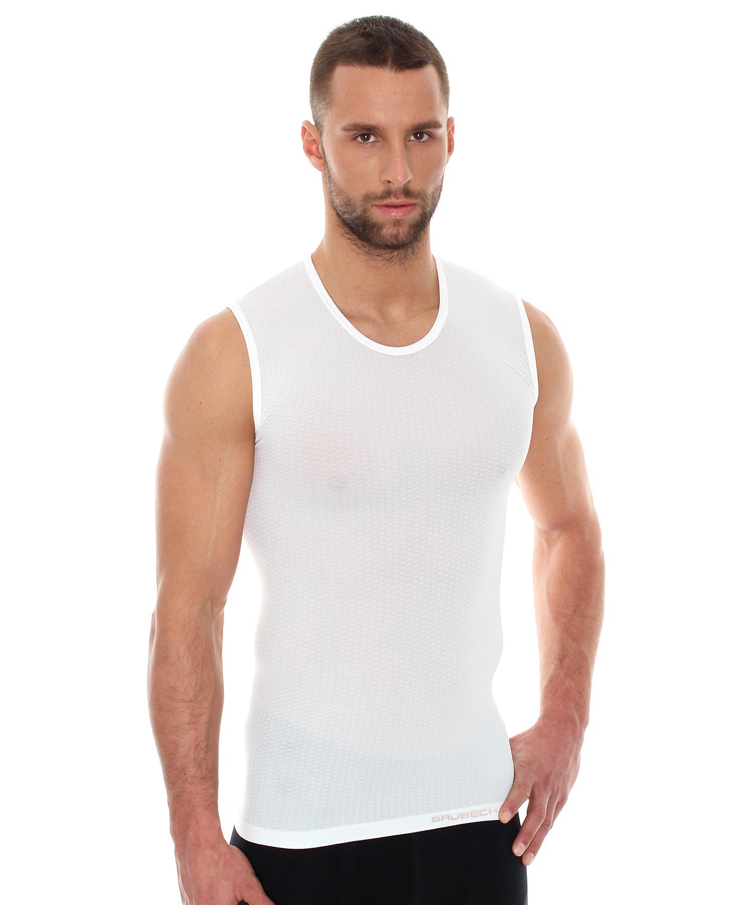 Koszulka typu base layer bez rękawów wykonana została w technologii bezszwowej z cienkiej, oddychającej dzianiny. Przylegająca do ciała dzianina oraz struktura 3D tworzą kanały powietrzne. Latem zwiększają wentylację organizmu, a zimą gromadzą ciepłe powietrze chroniąc przed wyziębieniem. Konstrukcja oparta na modelu trójwymiarowej siatki kilkakrotnie zwiększa powierzchnie odbioru wilgoci. Niewielka waga, obcisły krój, miękka dzianina nie krępuje ruchów i chroni przed otarciami. Dzianina posiada właściwości antybakteryjne i antyalergiczne. Produkt całoroczny, polecany do różnych aktywności jako warstwa podstawowa.